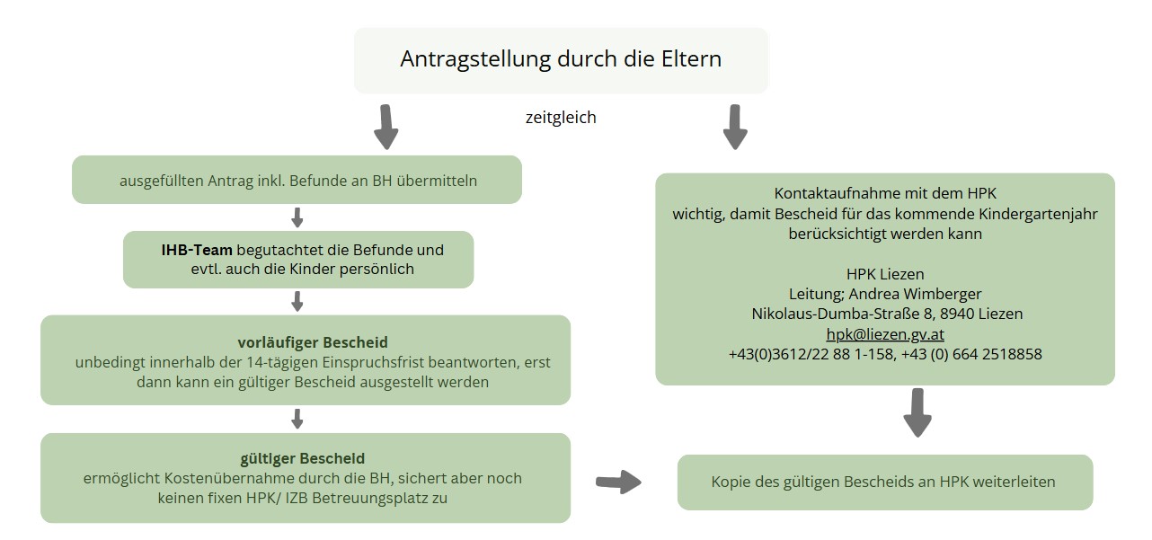 Die IZB ist die mobile Betreuungsform und das multiprofessionelle Team fährt in die Regelkindergärten des ganzen Bezirkes Liezen und betreut die Kinder mit gültigem Bescheid nach dem Stmk. BHG in deren Heimatkindergarten.