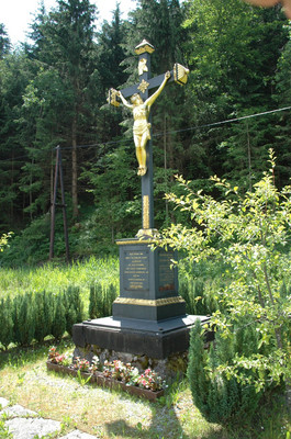 Im Jahre 1843 ließ der Gewerke Josef Pesendorfer - durch ihn erlebte die Liezener Eisenproduktion Mitte des 19. Jahrhunderts eine Blütezeit - als Dank für seine Erfindung, nämlich Torf für Heizzwecke bei seinen Werksöfen zu verwenden, am Eingang zum Gampermoos, ein Kreuz errichten. Das mächtige Gusseisenkreuz wurde gründlich restauriert und in einem feierlichen Akt 1997 unweit des ursprünglichen Standortes wieder aufgestellt. Es steht nun neben der Bundesstraße (Schoberpass Str. B113 - Richtung Selzthal rechter Seite), auf Liezener Boden, inmitten einer Grünanlage, flankiert von zwei jungen Moorbirken.