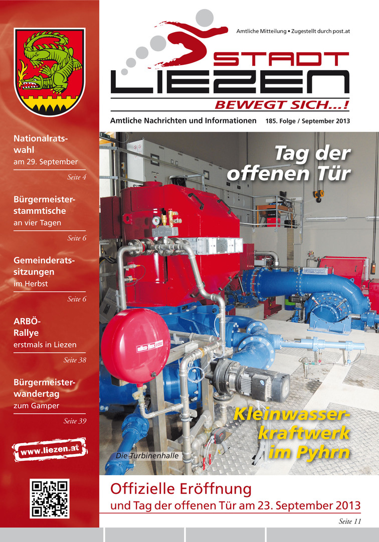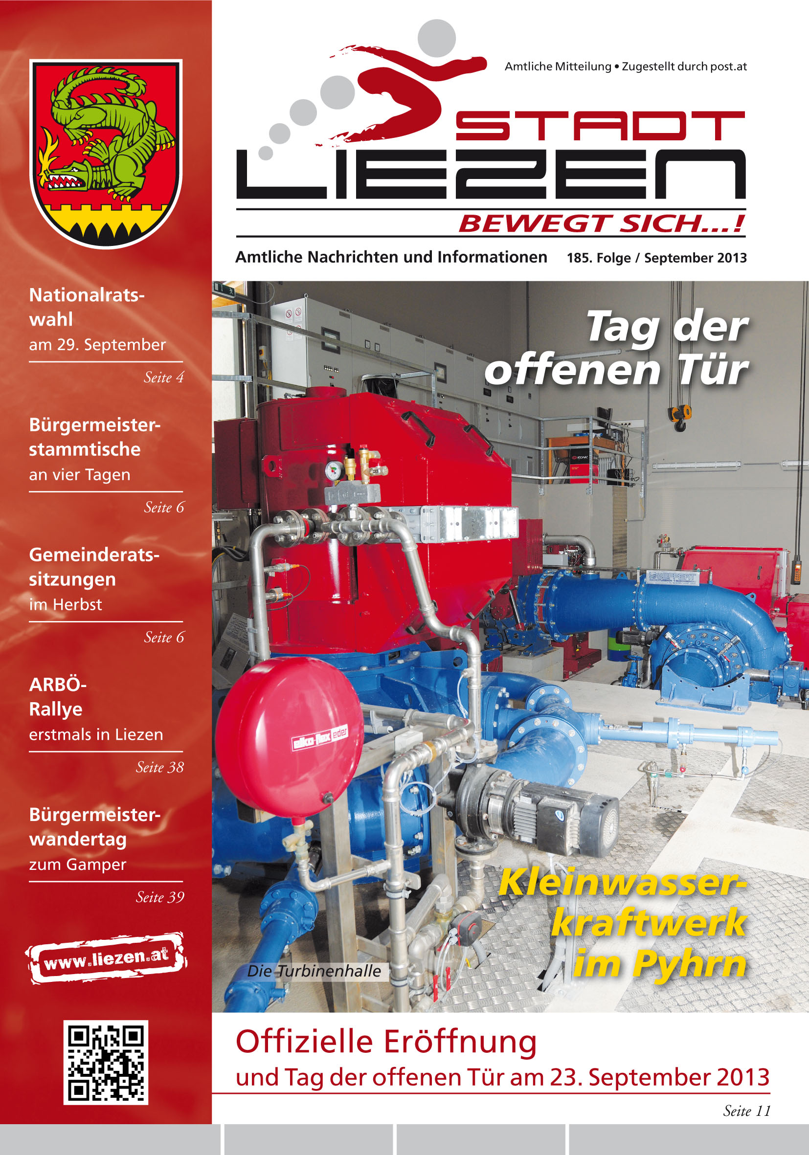Öffnen Sie die unten angeführte PDF-Datei und blättern Sie online in der September-Ausgabe der Liezener Stadtnachrichten "STADT LIEZEN BEWEGT SICH ...!"