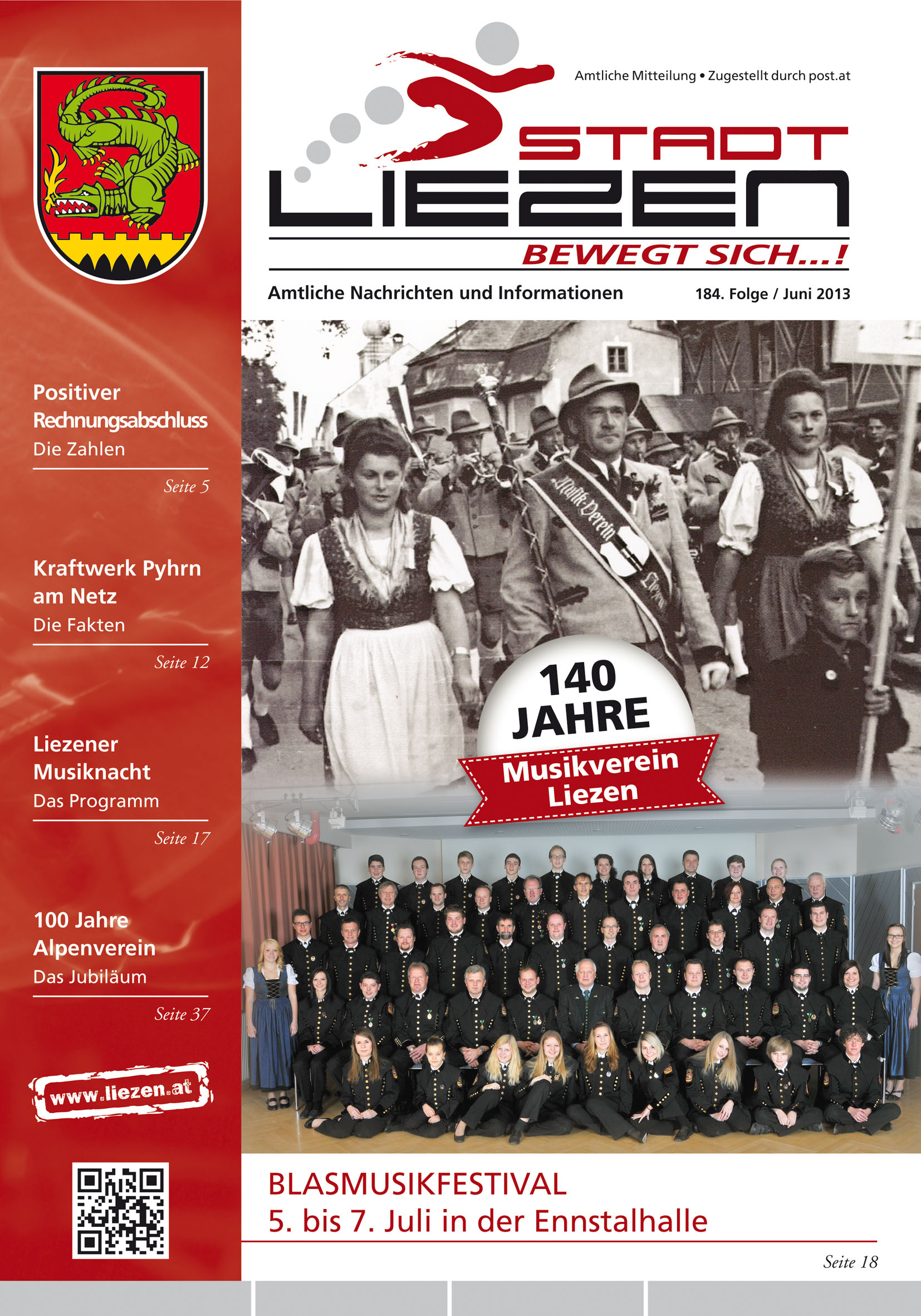 Öffnen Sie die unten angeführte PDF-Datei und blättern Sie online in der Juni-Ausgabe der Liezener Stadtnachrichten "STADT LIEZEN BEWEGT SICH ...!"