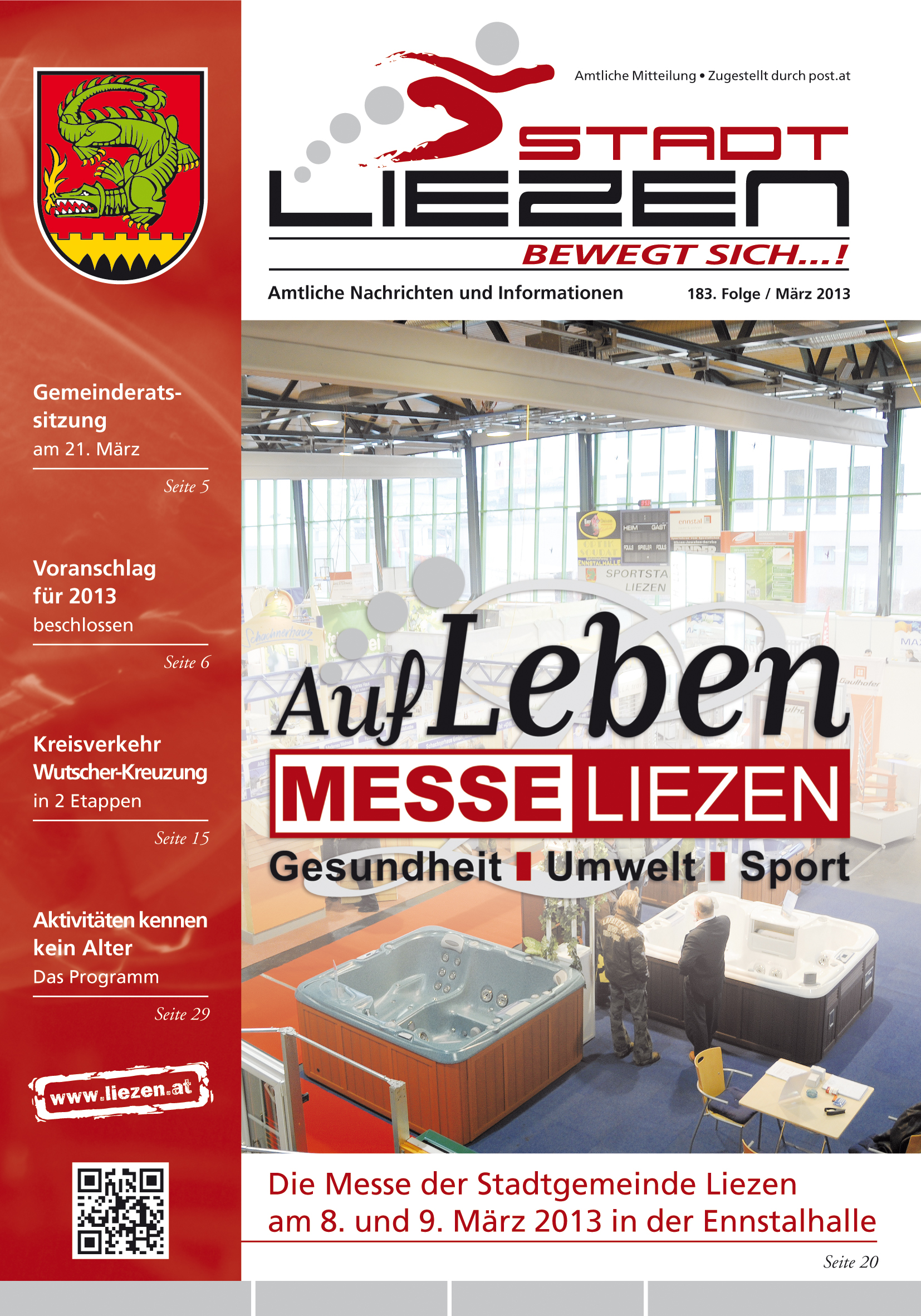 Öffnen Sie die unten angeführte PDF-Datei und blättern Sie online in der März-Ausgabe der Liezener Stadtnachrichten "STADT LIEZEN BEWEGT SICH ...!"