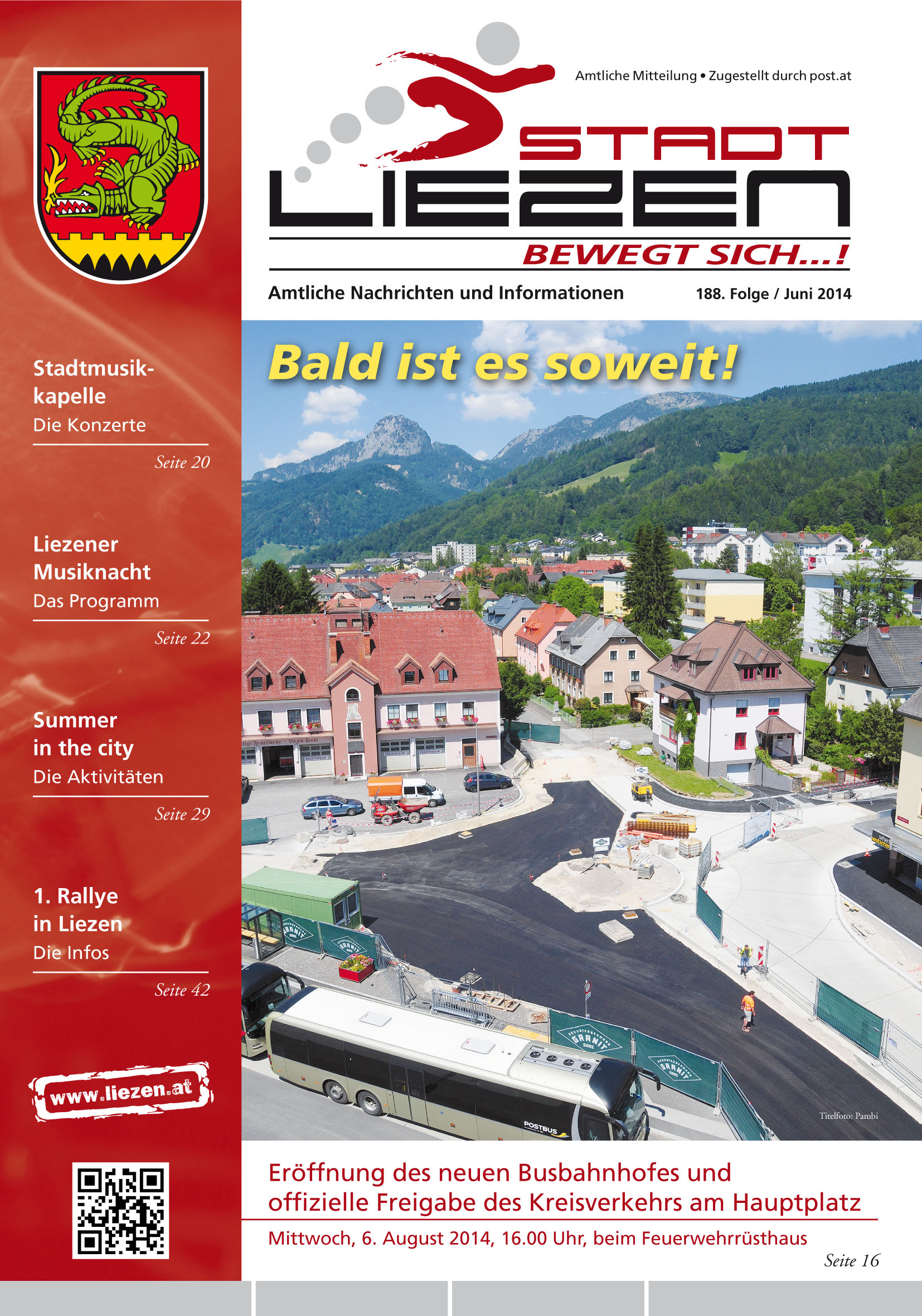 Öffnen Sie die unten angeführte PDF-Datei und blättern Sie online in der Juni-Ausgabe der Liezener Stadtnachrichten "STADT LIEZEN BEWEGT SICH ...!"