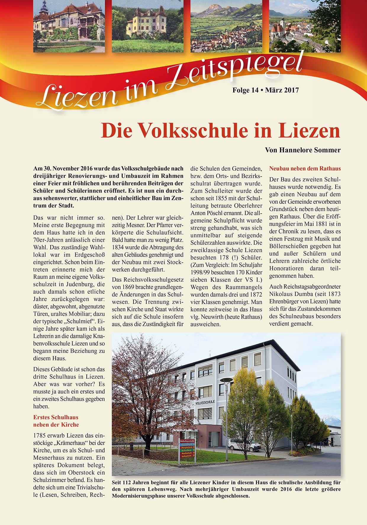 Weiters steht Ihnen im Anhang auch die aktuelle Beilage "Liezen im Zeitenspiegel" online zur Verfügung. Dieses Mal zum Thema "Die Volksschule in Liezen".
