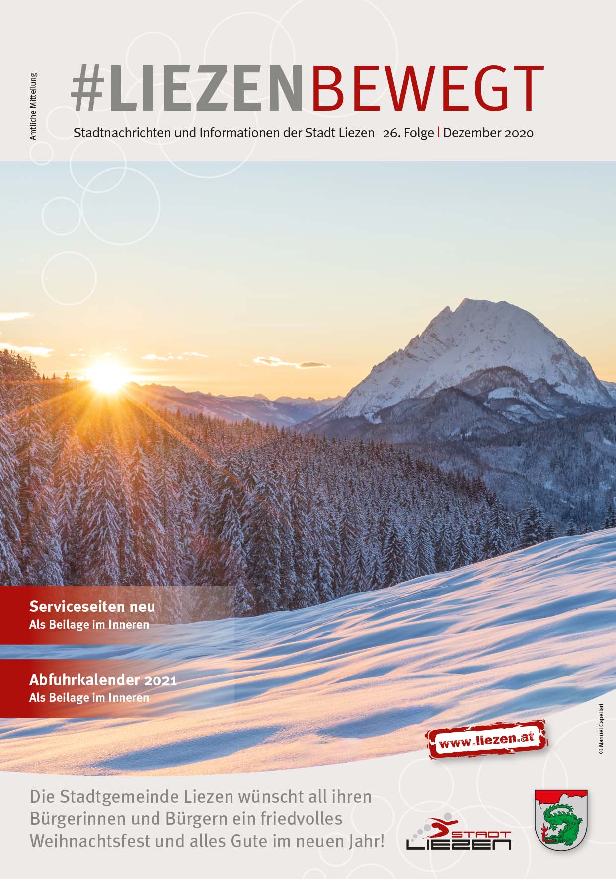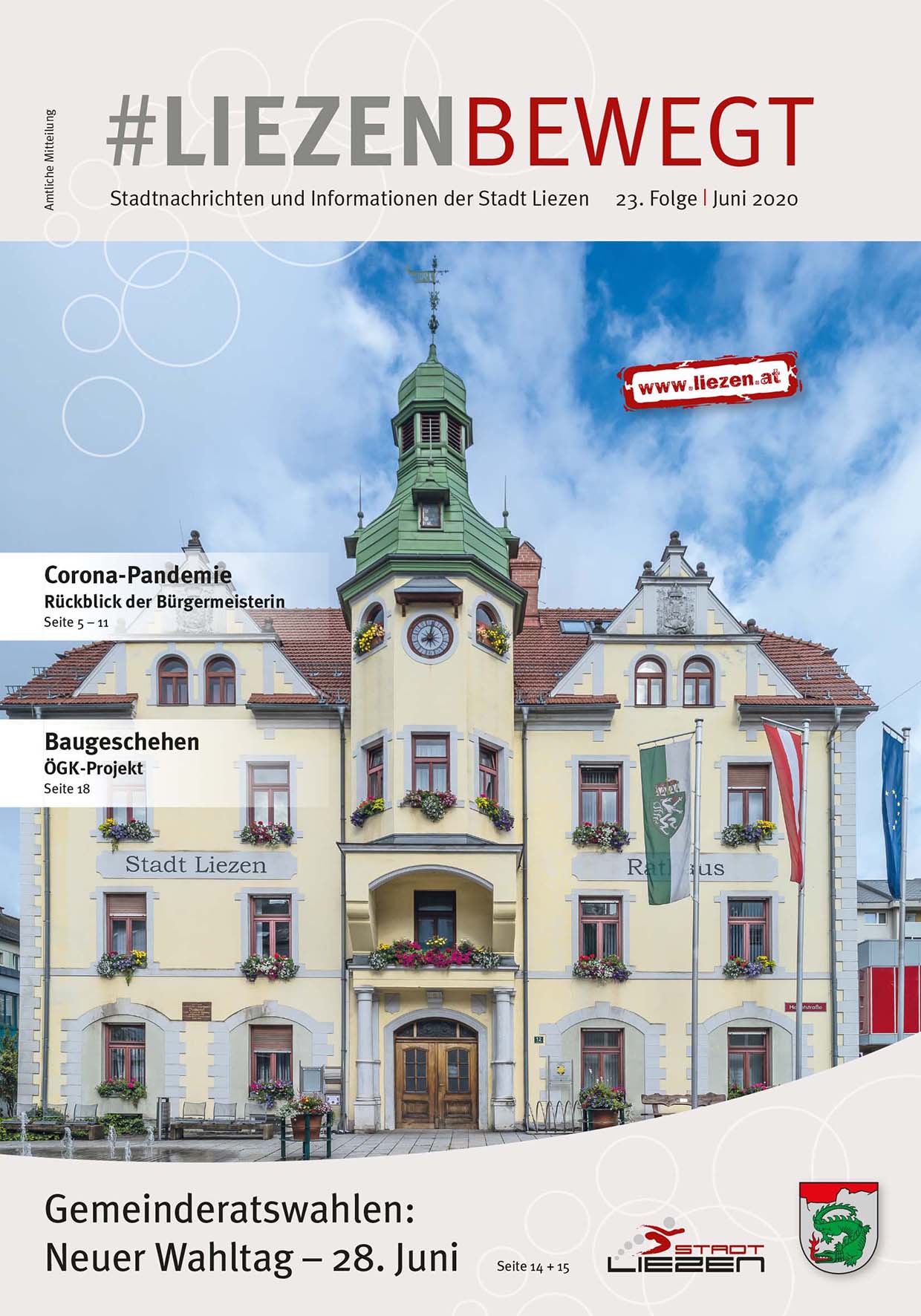 Die aktuelle Ausgabe der Stadtnachrichten gibt Ihnen eine Übersicht was in der Stadtgemeinde Liezen in den vergangenen Wochen, geprägt von der Corona-Pandemie, passiert ist. Darüber hinaus sind wie gewohnt Berichte zu aktuellen Bauvorhaben, natürlich Informationen zur Gemeinderatswahl 2020 und weitere aktuelle Artikel zu finden. Ein Zukunftsprojekt sticht noch hervor: Das Radverkehrskonzept der Stadt Liezen - damit wollen wir den Alltagsradverkehr in der Stadt mit Hilfe unserer Leserinnen und Leser forcieren, daher ist auch ein Umfragebogen enthalten. Wir wünschen Ihnen viel Freude beim Lesen.