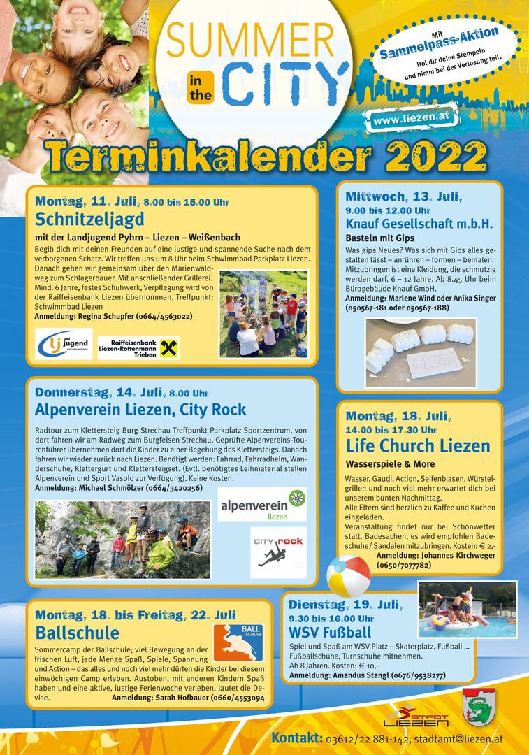 Für Rückfragen und Buchungen wenden sie sich bitte an Barbara Aigner, per E-Mail unter barbara.aigner@liezen.at oder telefonisch unter 03612/22 881-114.